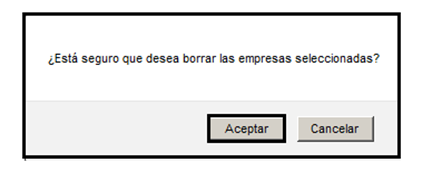 La aplicación mostrará un mensaje de confirmación antes de proceder a la eliminación de la empresa seleccionada.