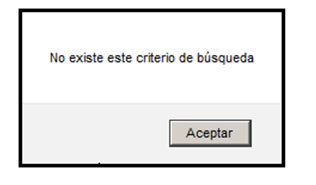 Si el criterio de búsqueda introducido no devuelve ningún resultado, la aplicación muestra el siguiente mensaje.